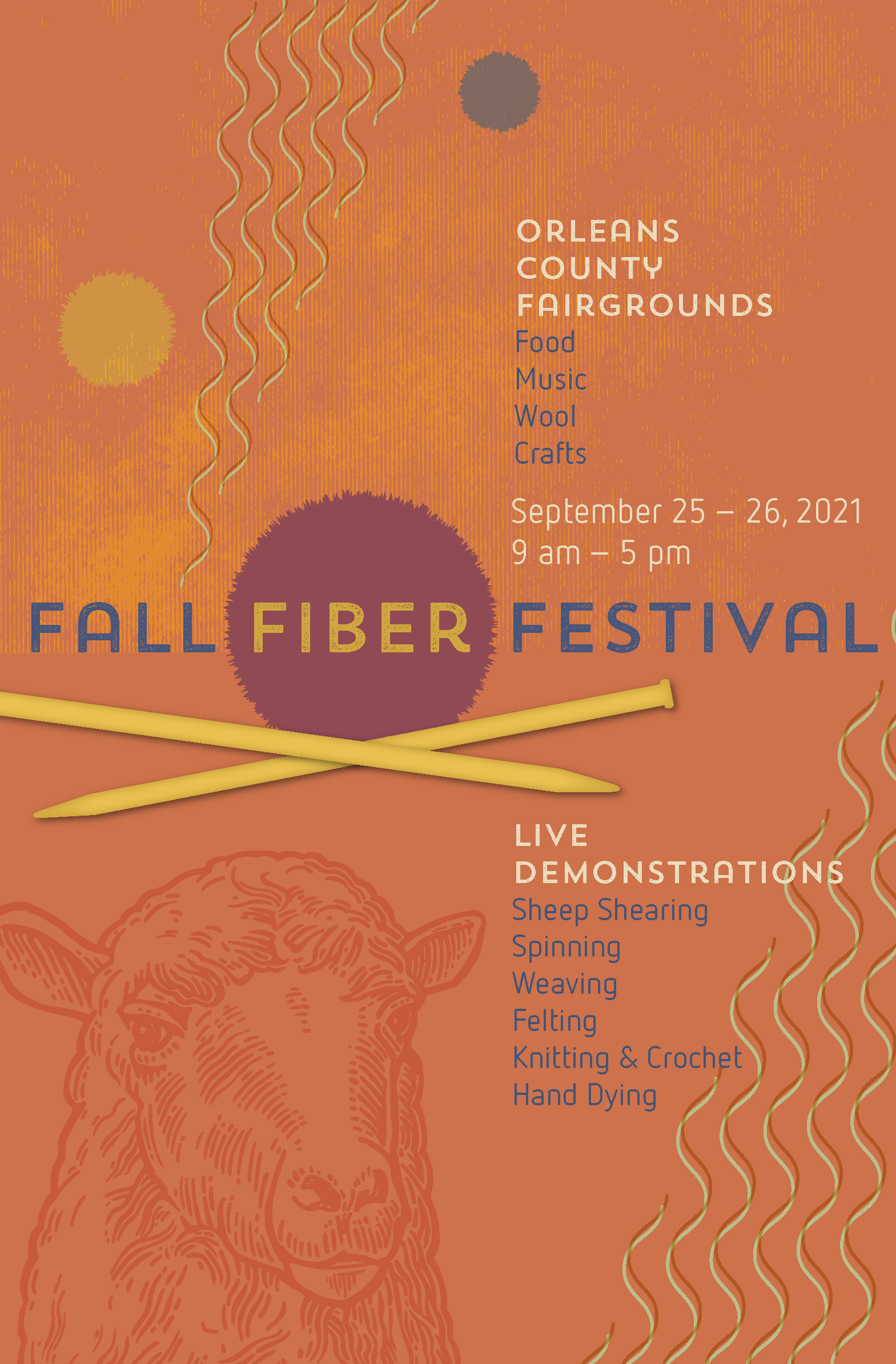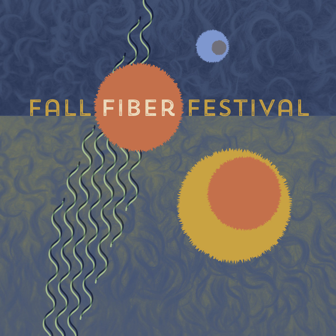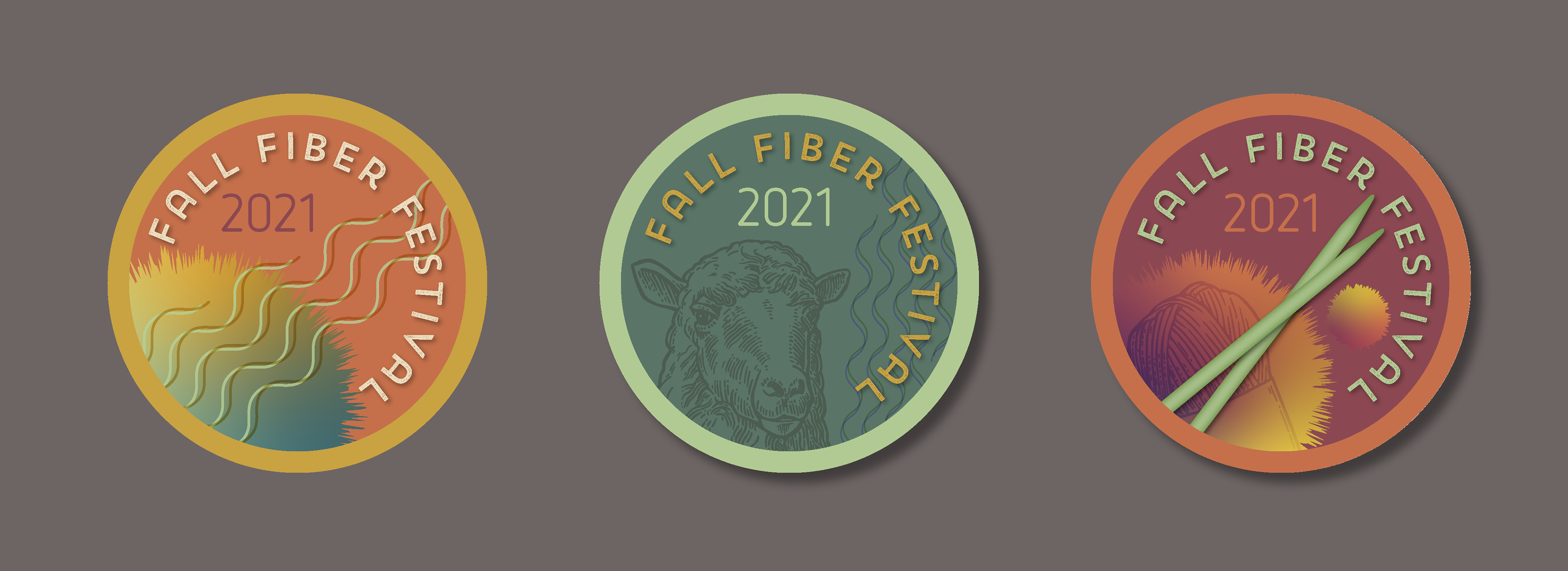 Branding for Fall Fiber Festival, created for Adobe Illustrator Daily Creative Challenge, #AIDailyChallenge, includes labels, tote bag, print ad, stickers, for a fictional wool and fiber fest to be held in the fall of 2021.
