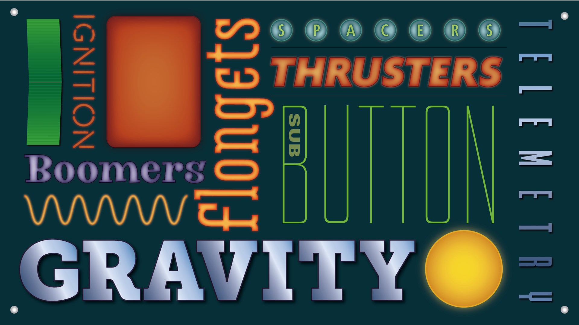 Challenge #3: Design the control panel for a spaceship using outer and inner glow to create glowing buttons. I decided to use the button labels to create a glowing typographic composition.