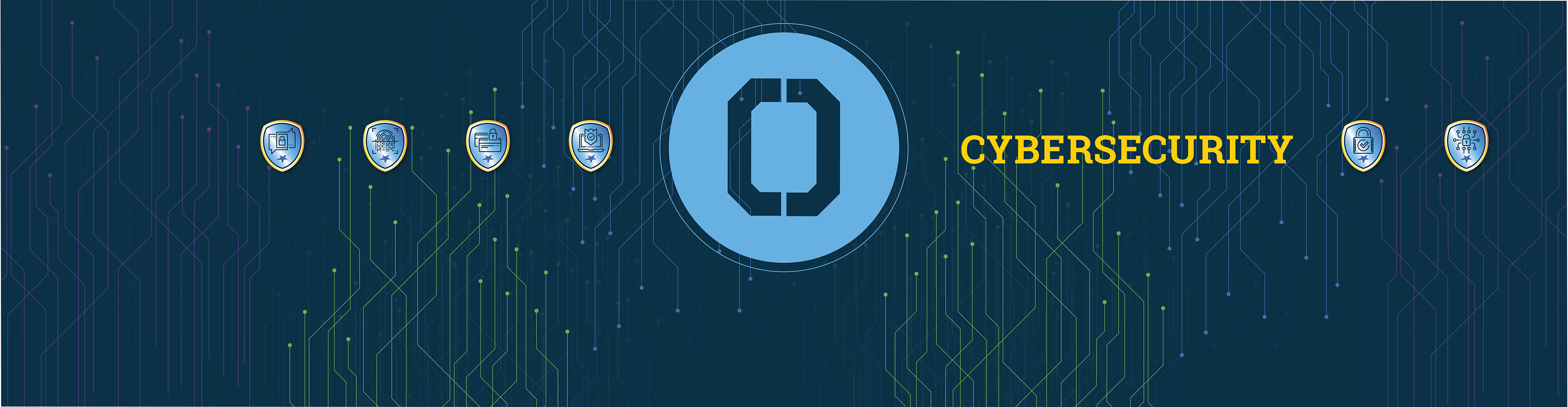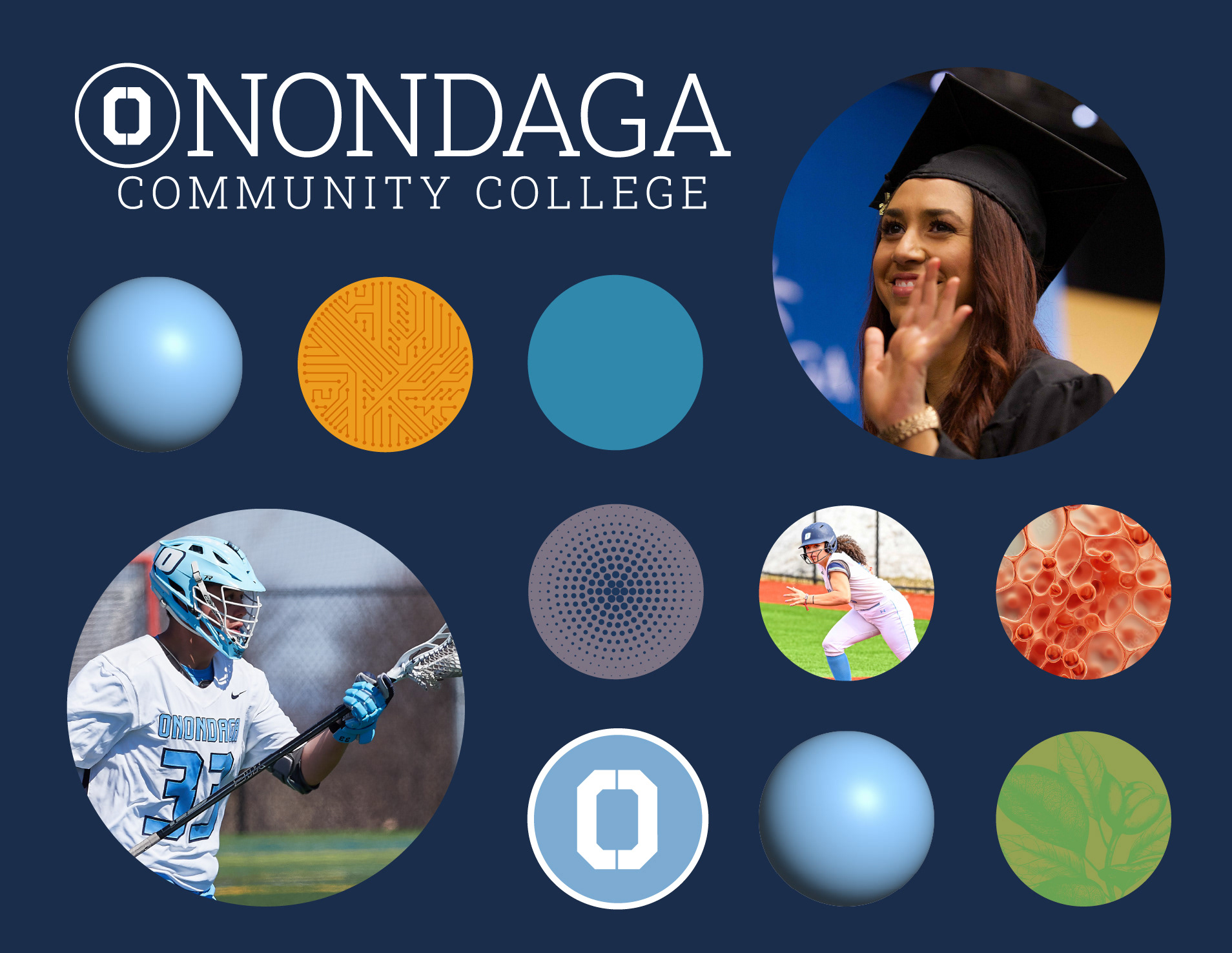 Design for Onondaga Community College’s Cybersecurity classroom wall vinyl. The large college insignia in the middle was printed on plexiglass and backlit.